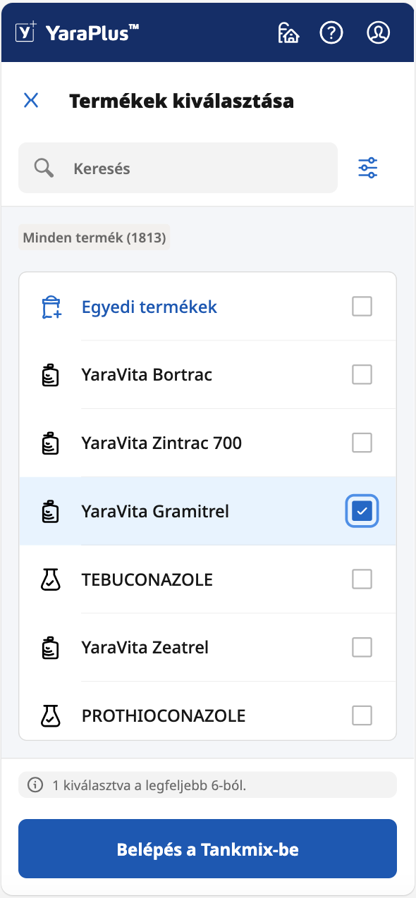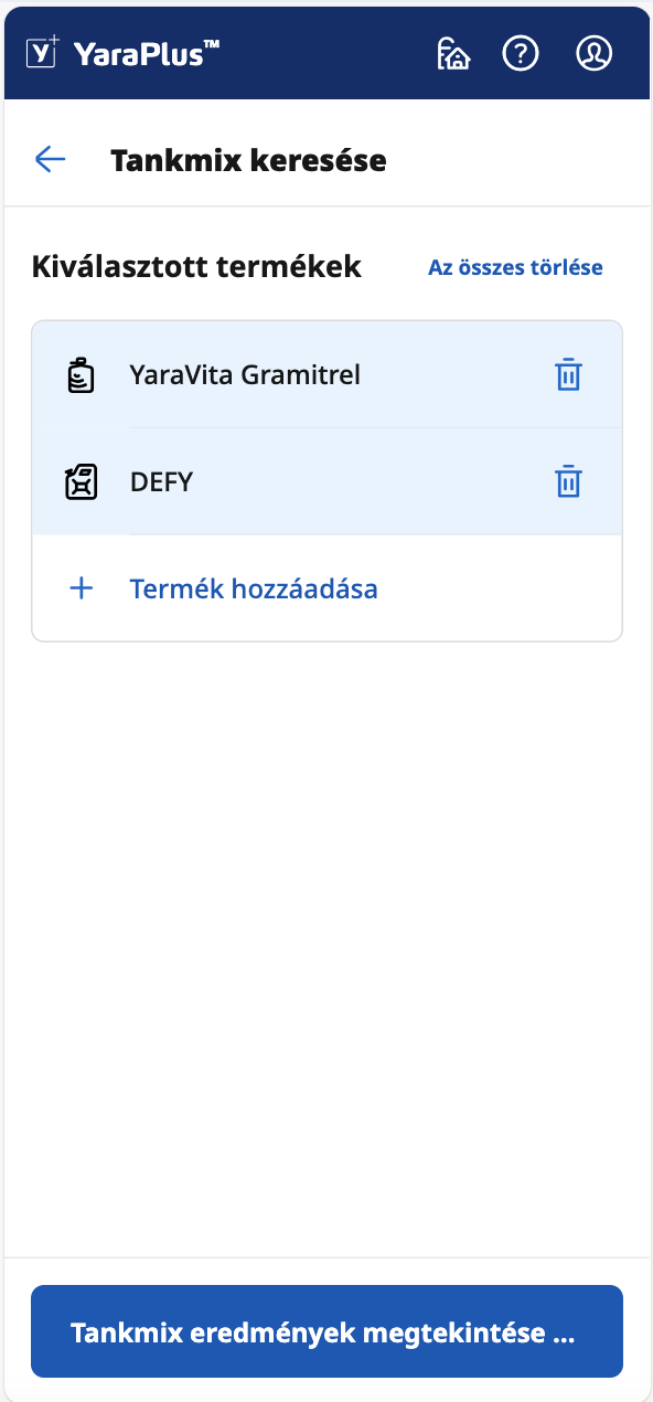 Gyorsan ellenőrizheti a kijuttatandó termékek kompatibilitását az alkalmazásban, vagy ingyenesen kérhet új Tankmix eredményeket.