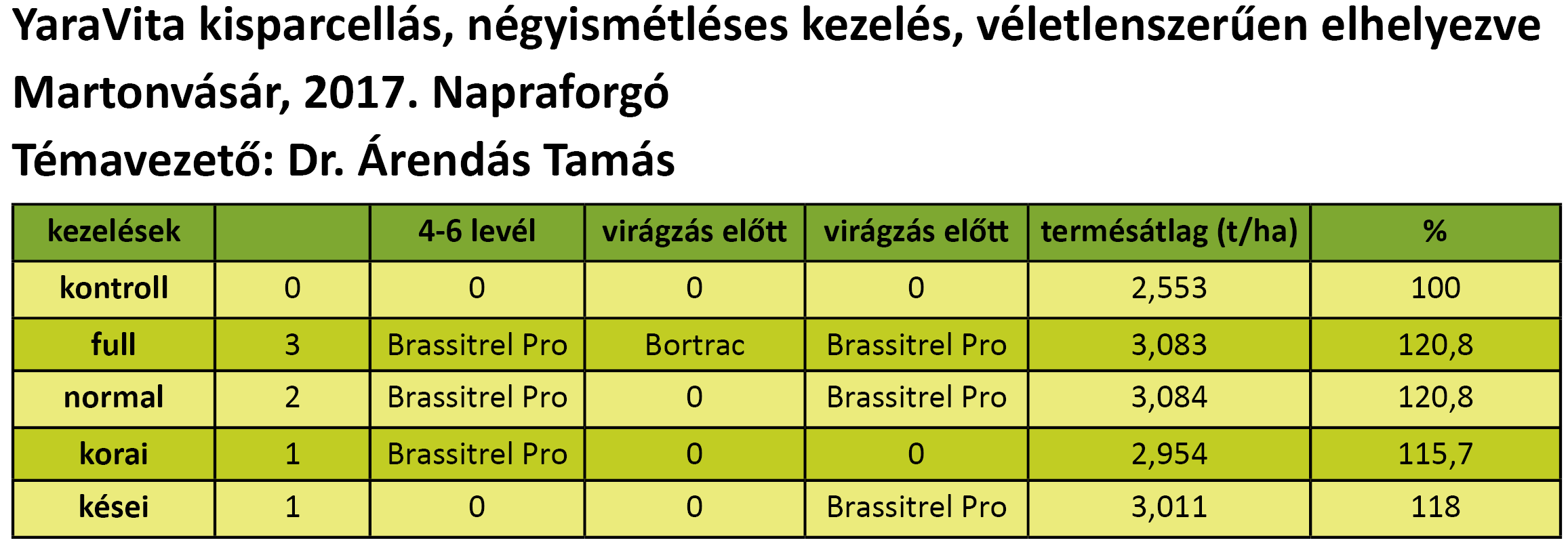 2. YaraVita Brassitrel Pro alkalmalmazásának lehetőségei és eredményessége