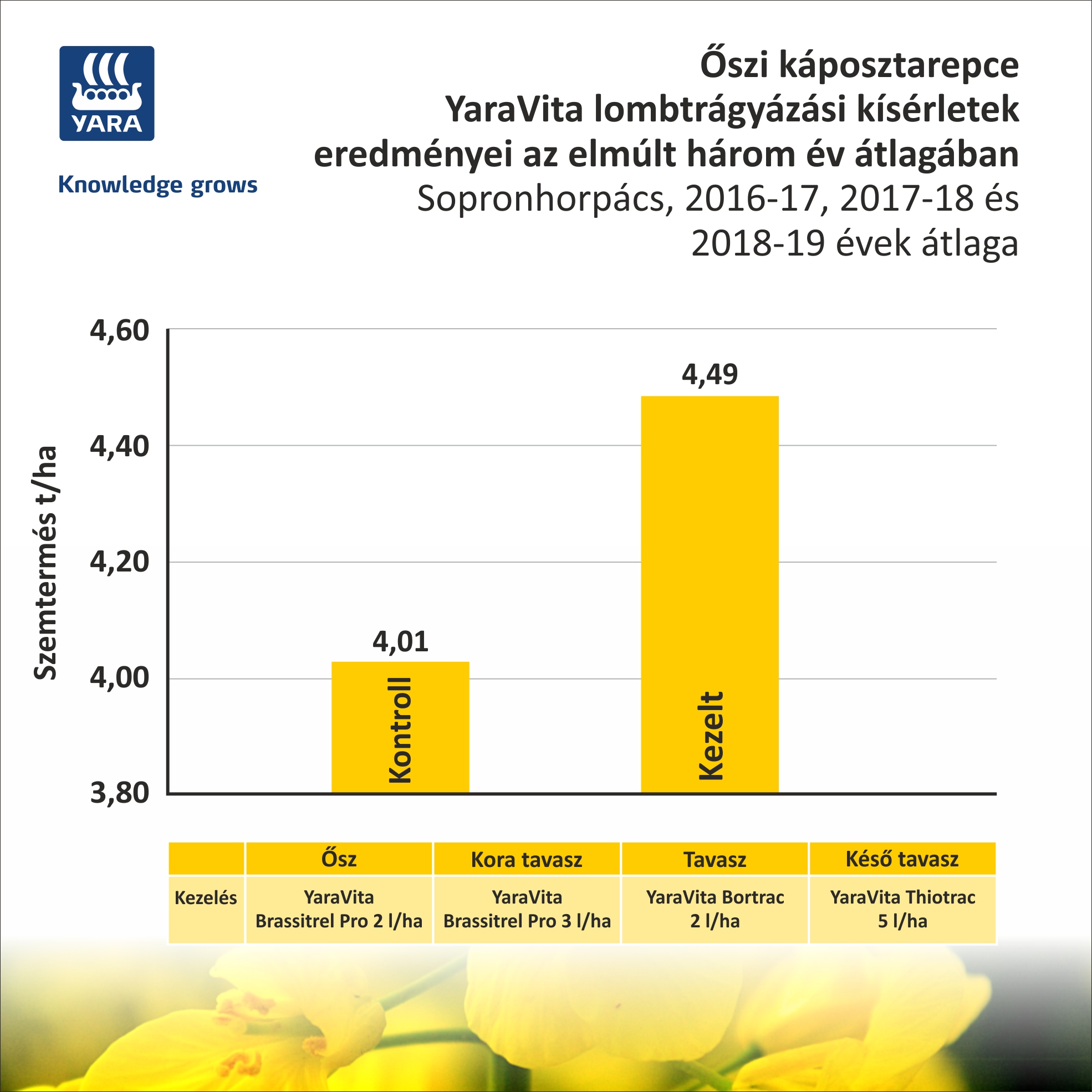 2. Őszi káposztarepce YaraVita lombtrágyázási eredményei három év átlagában