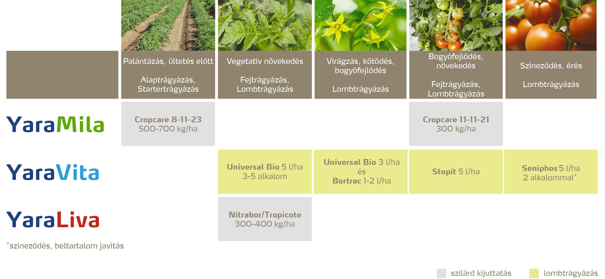 Műtrágya programunk a YaraMila, YaraLiva és a YaraVita lombtrágya családainkra épülnek.